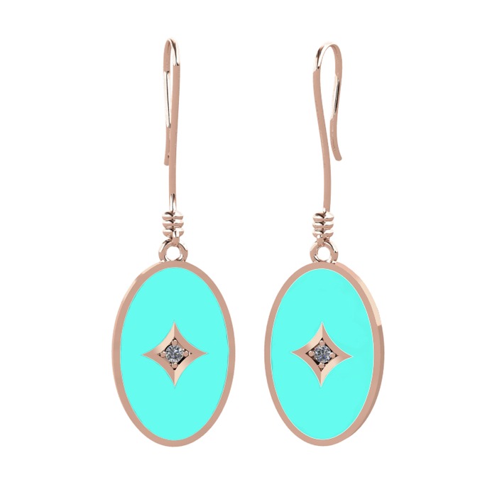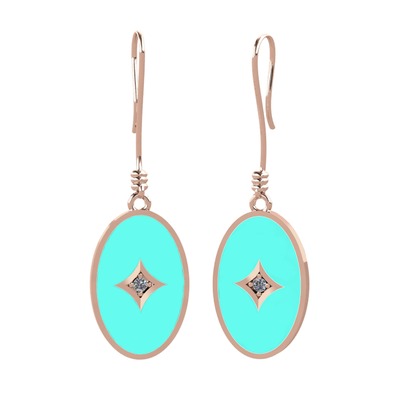 Pırlanta 14 ayar rose altın küpe (0.03 karat, turkuaz mineli)