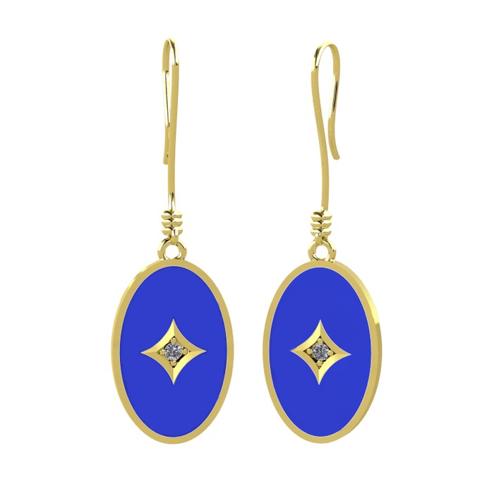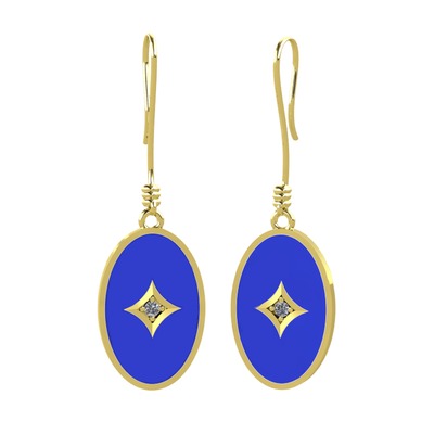 Pırlanta 925 ayar altın kaplama gümüş küpe (0.03 karat, lacivert mineli)