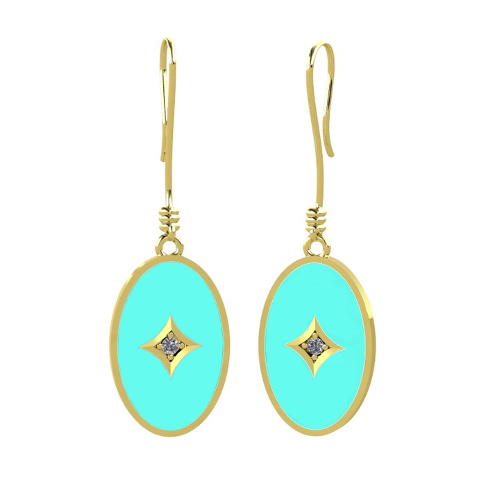 Pırlanta 925 ayar altın kaplama gümüş küpe (0.03 karat, turkuaz mineli)