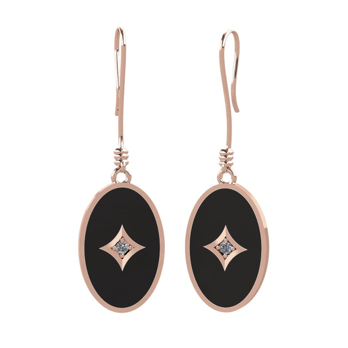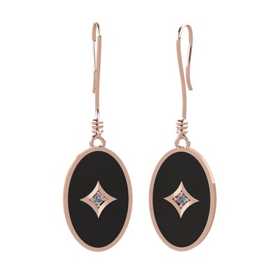 Pırlanta 925 ayar rose altın kaplama gümüş küpe (0.03 karat, siyah mineli)