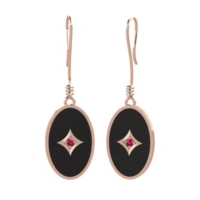 Rodolit garnet 14 ayar rose altın küpe (Siyah mineli)