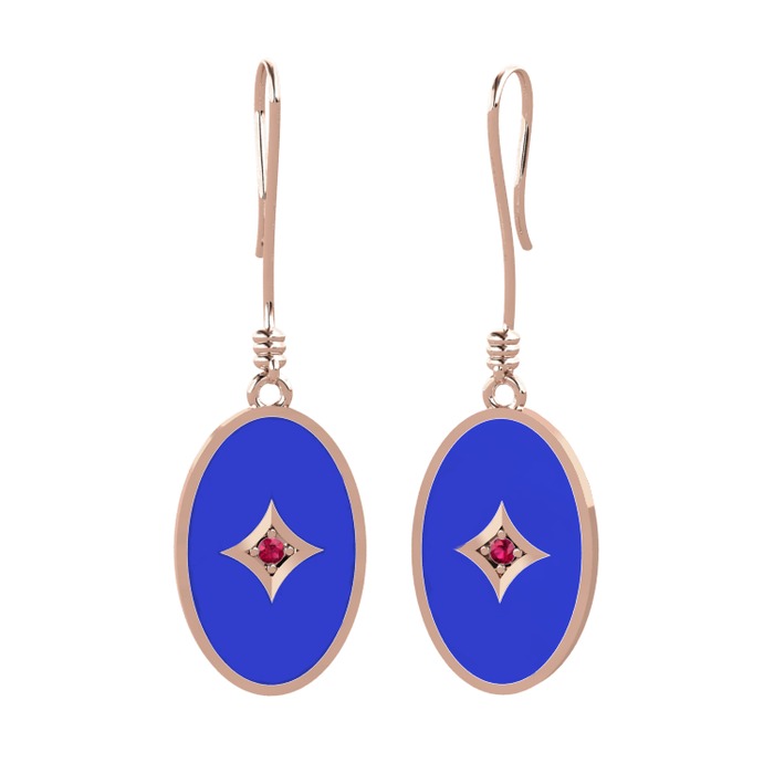 Rodolit garnet 8 ayar rose altın küpe (Lacivert mineli)