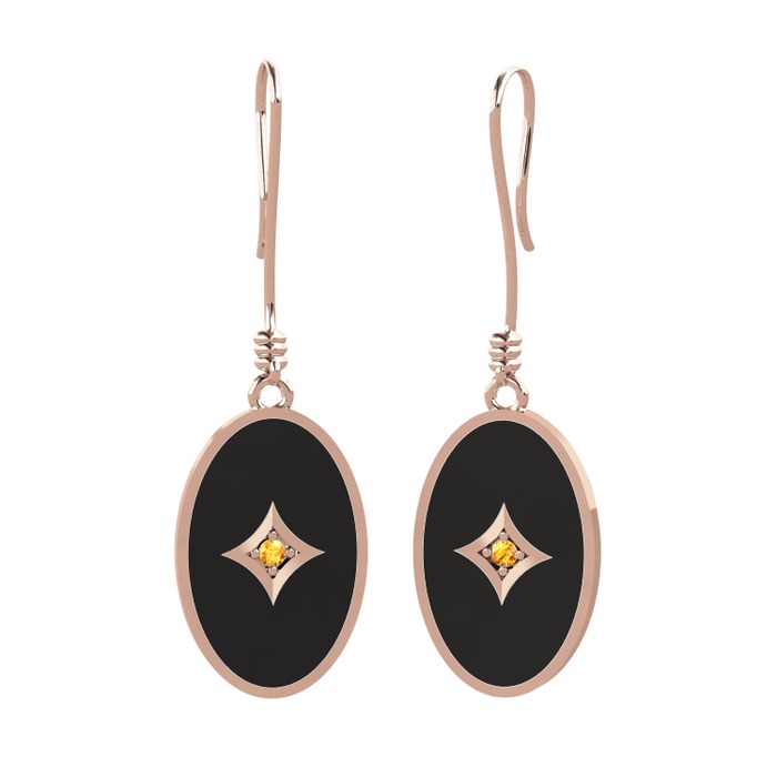 Sitrin 14 ayar rose altın küpe (Siyah mineli)