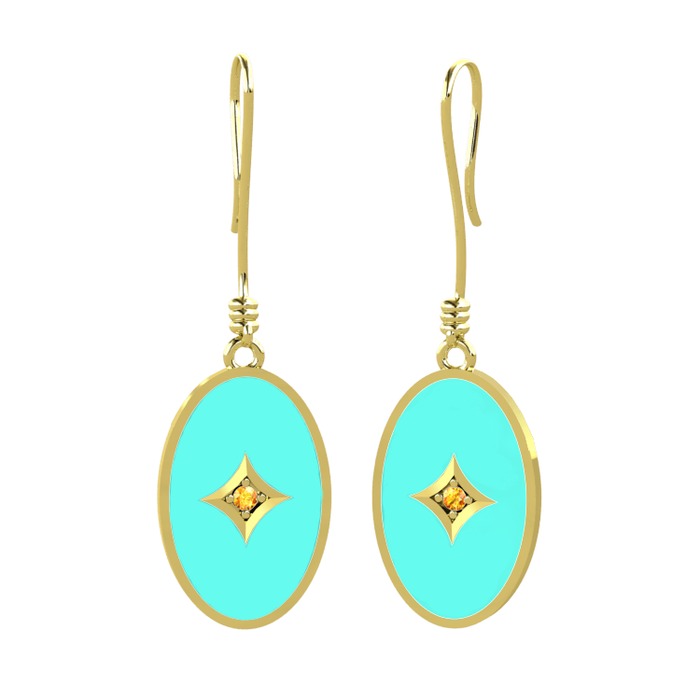 Sitrin 18 ayar altın küpe (Turkuaz mineli)