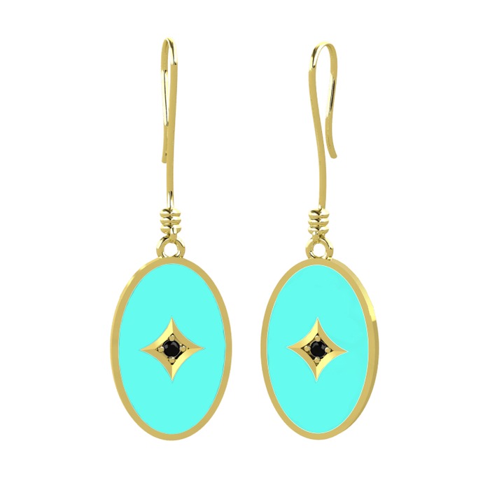 Siyah zirkon 14 ayar altın küpe (Turkuaz mineli)
