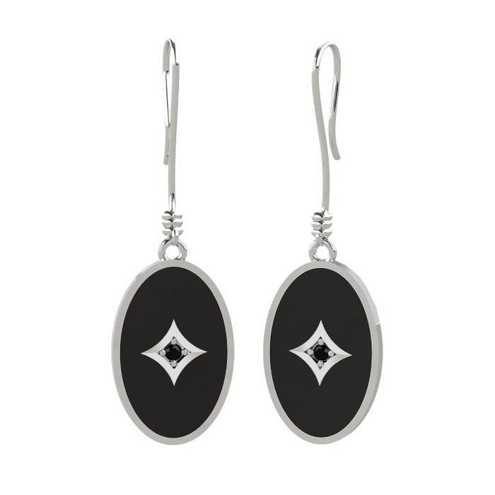 Siyah zirkon 8 ayar beyaz altın küpe (Siyah mineli)