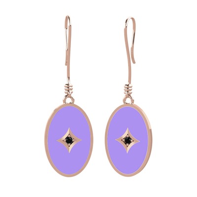 Siyah zirkon 8 ayar rose altın küpe (Menekşe mineli)