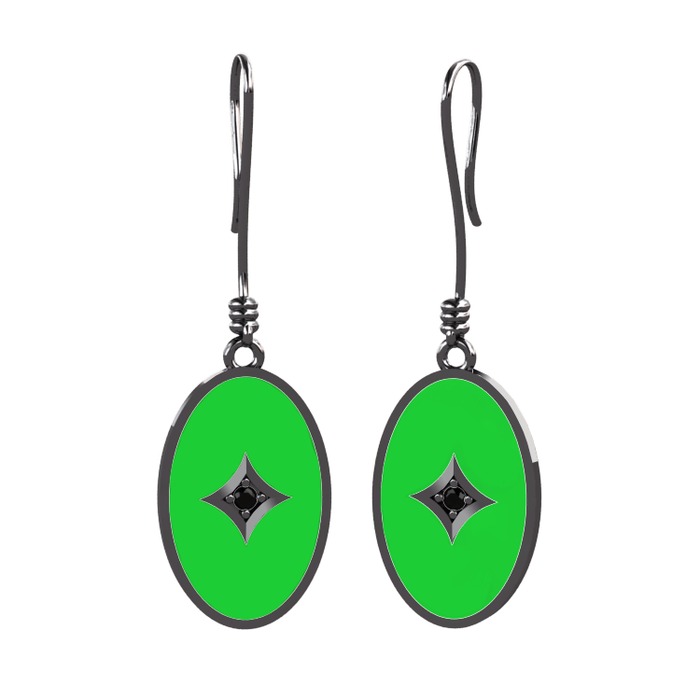 Siyah zirkon 925 ayar siyah rodyum kaplama gümüş küpe (Yeşil mineli)