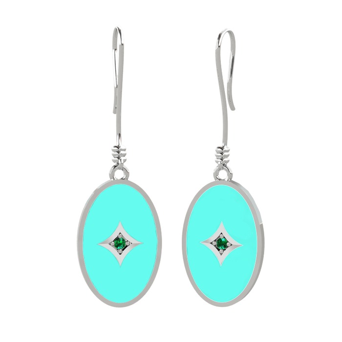 Yeşil kuvars 14 ayar beyaz altın küpe (Turkuaz mineli)