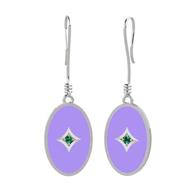 Yeşil kuvars 8 ayar beyaz altın küpe (Menekşe mineli)