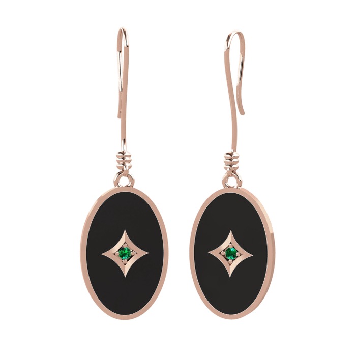 Yeşil kuvars 8 ayar rose altın küpe (Siyah mineli)
