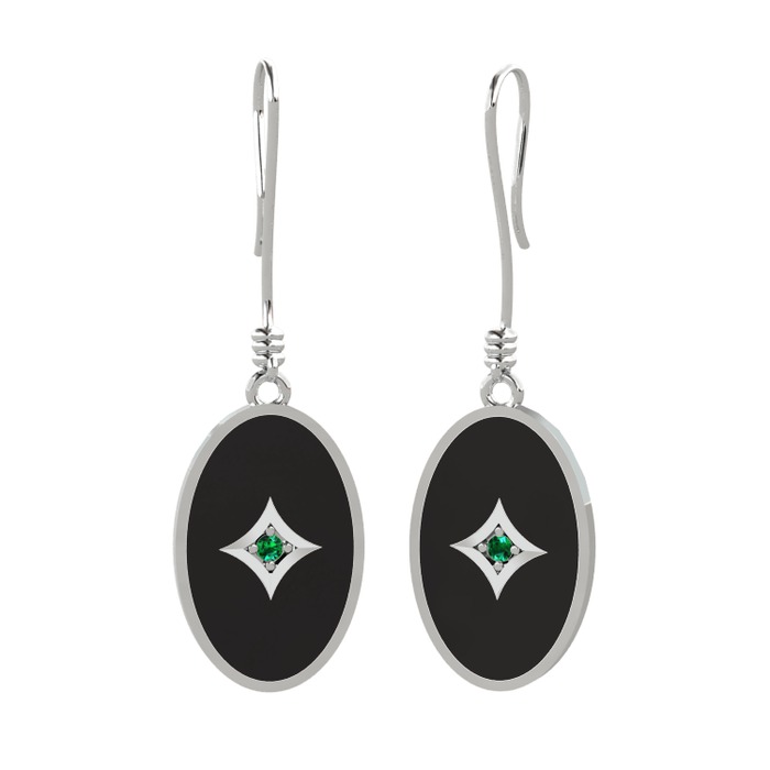 Yeşil kuvars 925 ayar gümüş küpe (Siyah mineli)