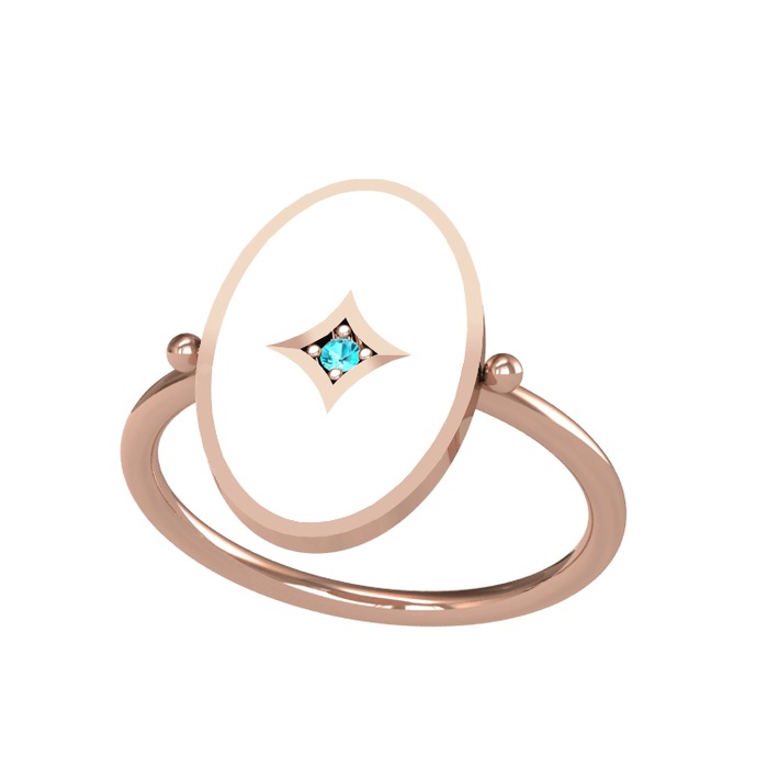 Akuamarin 8 ayar rose altın yüzük (Beyaz mineli)