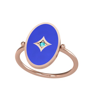 Akuamarin 925 ayar rose altın kaplama gümüş yüzük (Lacivert mineli)