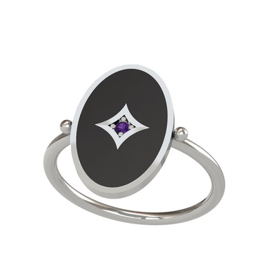 Ametist 18 ayar beyaz altın yüzük (Siyah mineli)