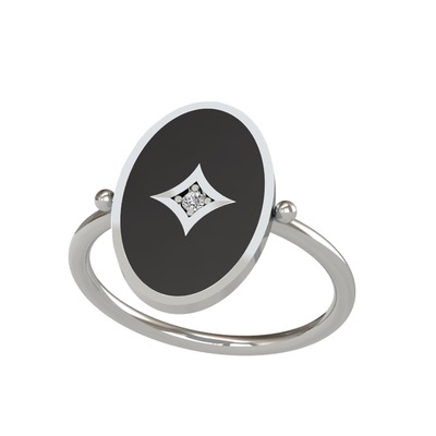 Beyaz zirkon 8 ayar beyaz altın yüzük (Siyah mineli)