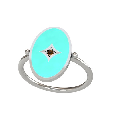 Dumanlı kuvars 18 ayar beyaz altın yüzük (Turkuaz mineli)