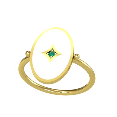 Kök zümrüt 18 ayar altın yüzük (Beyaz mineli)