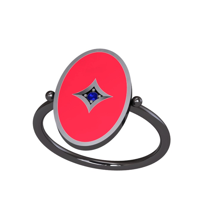 Lab safir 925 ayar siyah rodyum kaplama gümüş yüzük (Kırmızı mineli)