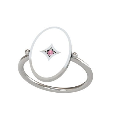 Pembe kuvars 8 ayar beyaz altın yüzük (Beyaz mineli)