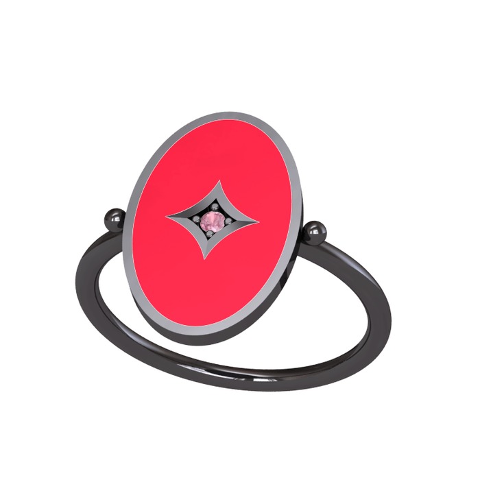 Pembe kuvars 925 ayar siyah rodyum kaplama gümüş yüzük (Kırmızı mineli)
