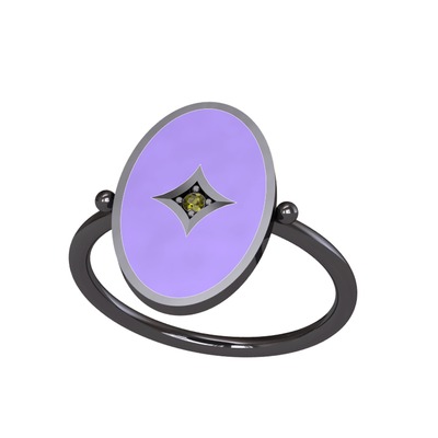 Peridot 925 ayar siyah rodyum kaplama gümüş yüzük (Menekşe mineli)