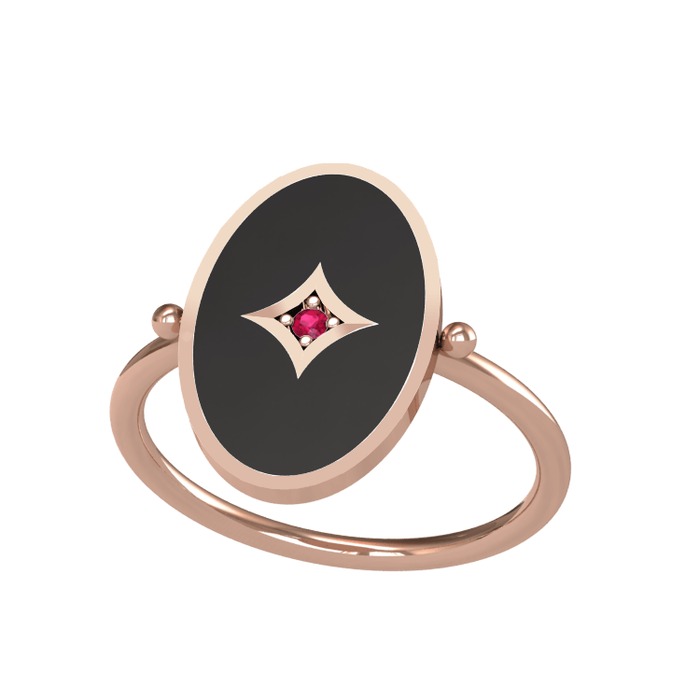 Rodolit garnet 18 ayar rose altın yüzük (Siyah mineli)