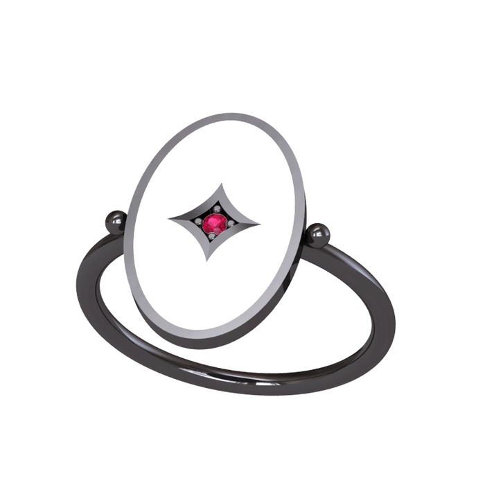 Rodolit garnet 925 ayar siyah rodyum kaplama gümüş yüzük (Beyaz mineli)