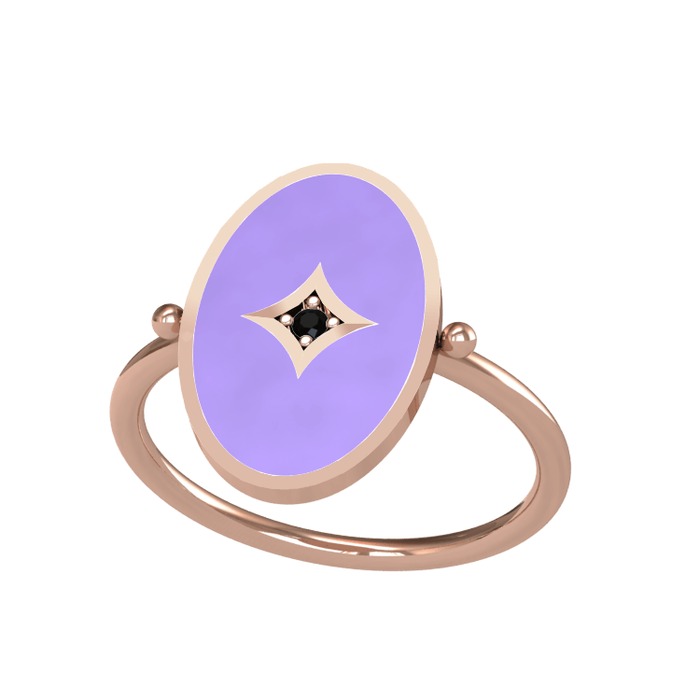 Siyah zirkon 14 ayar rose altın yüzük (Menekşe mineli)
