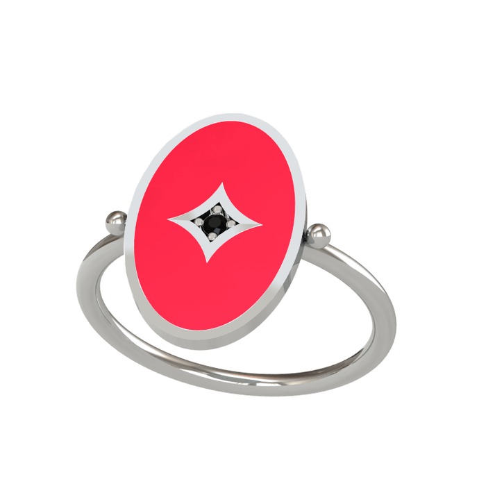 Siyah zirkon 18 ayar beyaz altın yüzük (Kırmızı mineli)