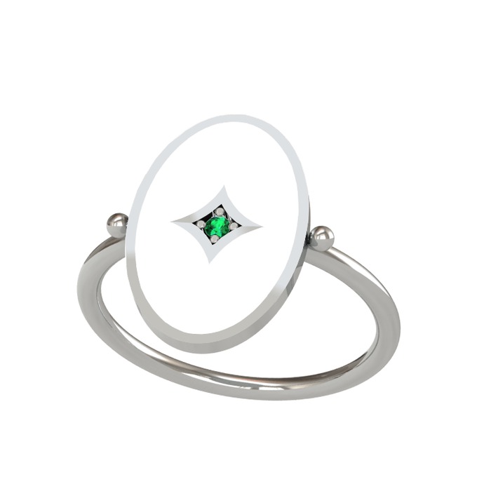 Yeşil kuvars 18 ayar beyaz altın yüzük (Beyaz mineli)