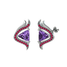 Ametist 14 ayar rose altın küpe (Bordo kırmızı mineli)