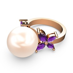Inci, ametist ve siyah zirkon 925 ayar altın kaplama gümüş yüzük