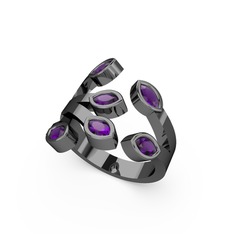 Ametist 925 ayar siyah rodyum kaplama gümüş yüzük