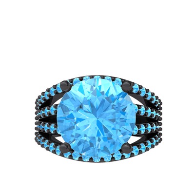 Akuamarin 925 ayar siyah rodyum kaplama gümüş yüzük