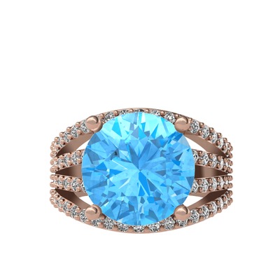 Akuamarin ve swarovski 14 ayar rose altın yüzük