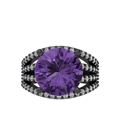 Ametist ve beyaz zirkon 925 ayar siyah rodyum kaplama gümüş yüzük