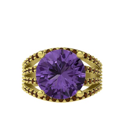Ametist ve dumanlı kuvars 8 ayar altın yüzük