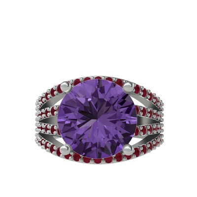 Ametist ve kök yakut 14 ayar beyaz altın yüzük