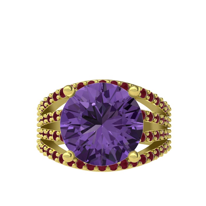 Ametist ve kök yakut 925 ayar altın kaplama gümüş yüzük
