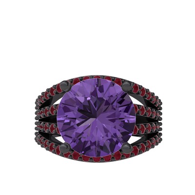 Ametist ve kök yakut 925 ayar siyah rodyum kaplama gümüş yüzük