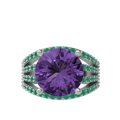 Ametist ve kök zümrüt 14 ayar beyaz altın yüzük