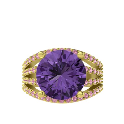 Ametist ve pembe kuvars 18 ayar altın yüzük