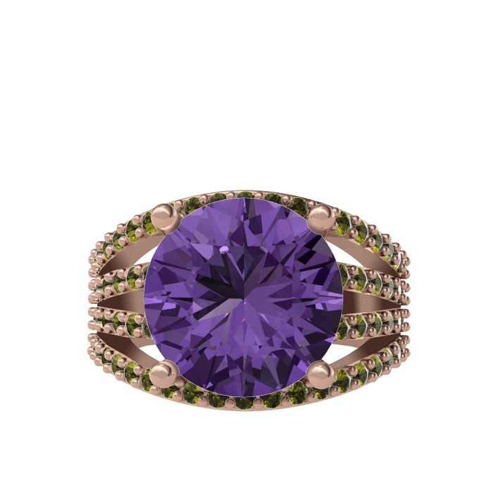 Ametist ve peridot 925 ayar rose altın kaplama gümüş yüzük