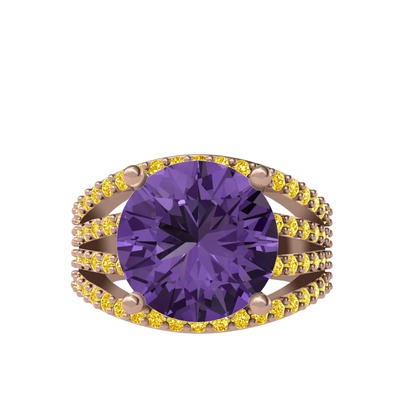 Ametist ve sitrin 18 ayar rose altın yüzük