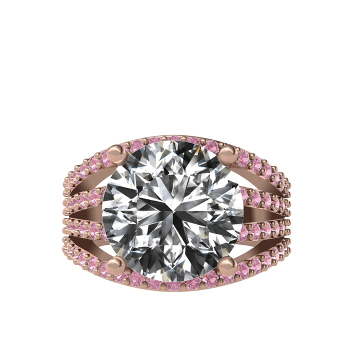 Beyaz zirkon ve pembe kuvars 8 ayar rose altın yüzük