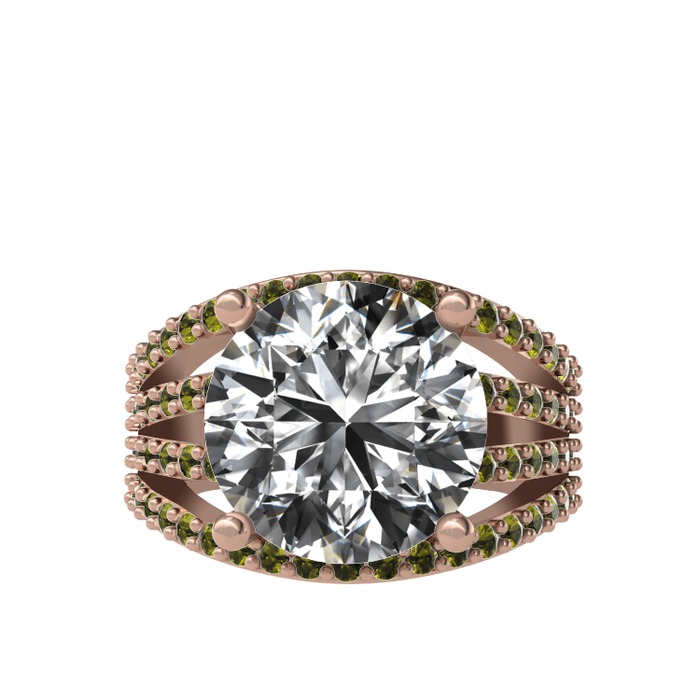 Beyaz zirkon ve peridot 14 ayar rose altın yüzük