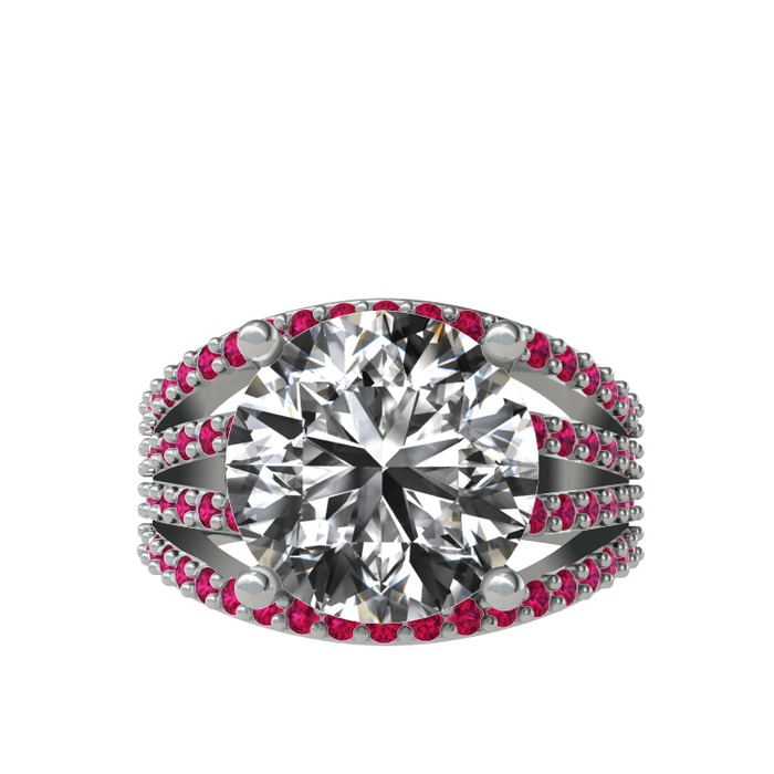 Beyaz zirkon ve rodolit garnet 18 ayar beyaz altın yüzük