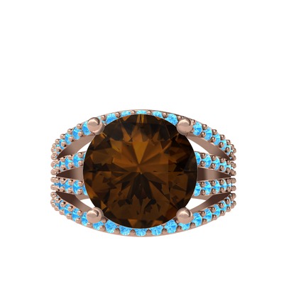 Dumanlı kuvars ve akuamarin 8 ayar rose altın yüzük
