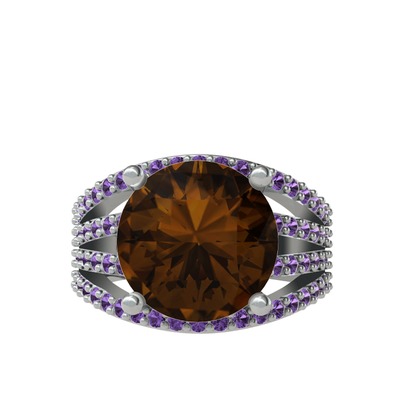Dumanlı kuvars ve ametist 925 ayar gümüş yüzük
